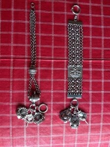 Zilveren herenhorloge kettingen met sleutel en signetten.