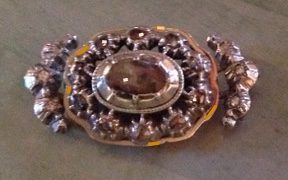 Verschillende zilveren klederdracht sieraden voor poppen zoals knopen en gespen etc.