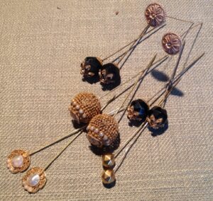 Diverse gouden mutsenspelden. Zeeland laatste kwart 19e eeuw. Detail foto’s ga naar ‘Contact’.