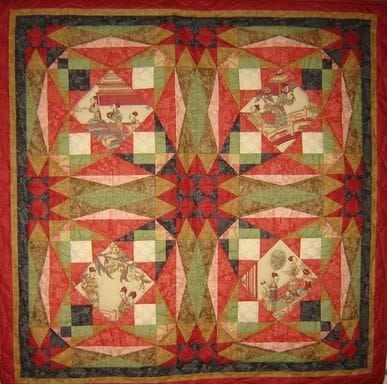 Om u een idee te geven of op weg te helpen bij het maken van een quilt of kostuum of misschien stoffering in uw interieur, tonen wij een aantal voorbeelden. De quilts zijn geheel of voor het grootste deel samengesteld uit sitsen van de collectie Den Haan & Wagenmakers. De getoonde voorbeelden zijn geen kits/pakketten en er zijn geen patronen beschikbaar.