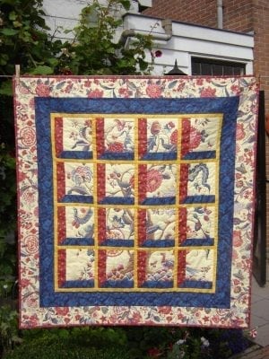 Wanneer U een Quilt gemaakt hebt van onze collectie Nederlandse sitsen bent U van harte welkom om op deze pagina Uw werkstuk aan anderen te tonen. Omdat het ons niet gelukt is om van de hierna afgebeelde quilts de naam van de maker te achterhalen, kiezen wij voor deze ” ongemerkte vogelvlucht“. De quilts gemaakt van onze collectie Den Haan & Wagenmakers worden op deze pagina zonder winstoogmerk maar puur ter inspiratie verzameld en afgebeeld.