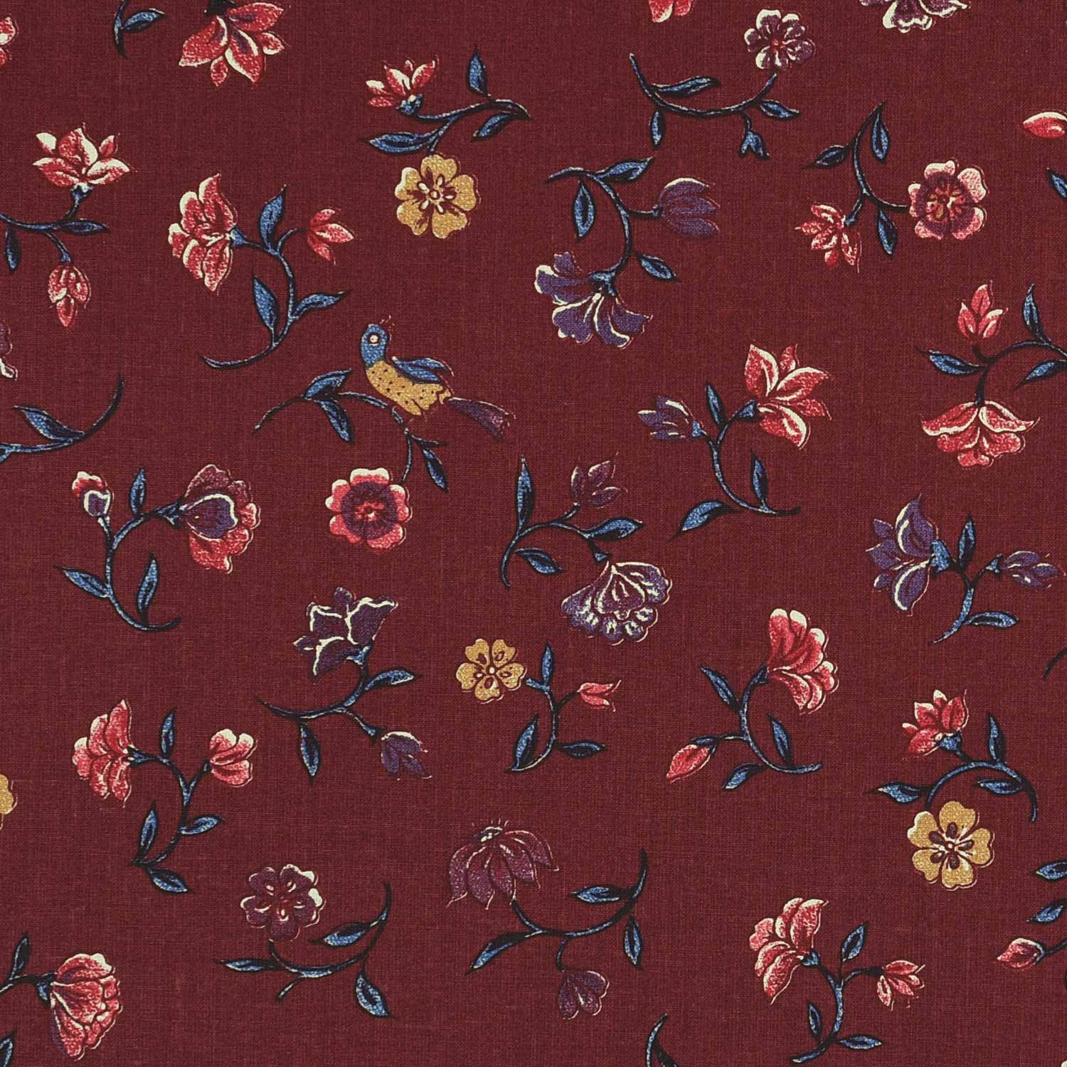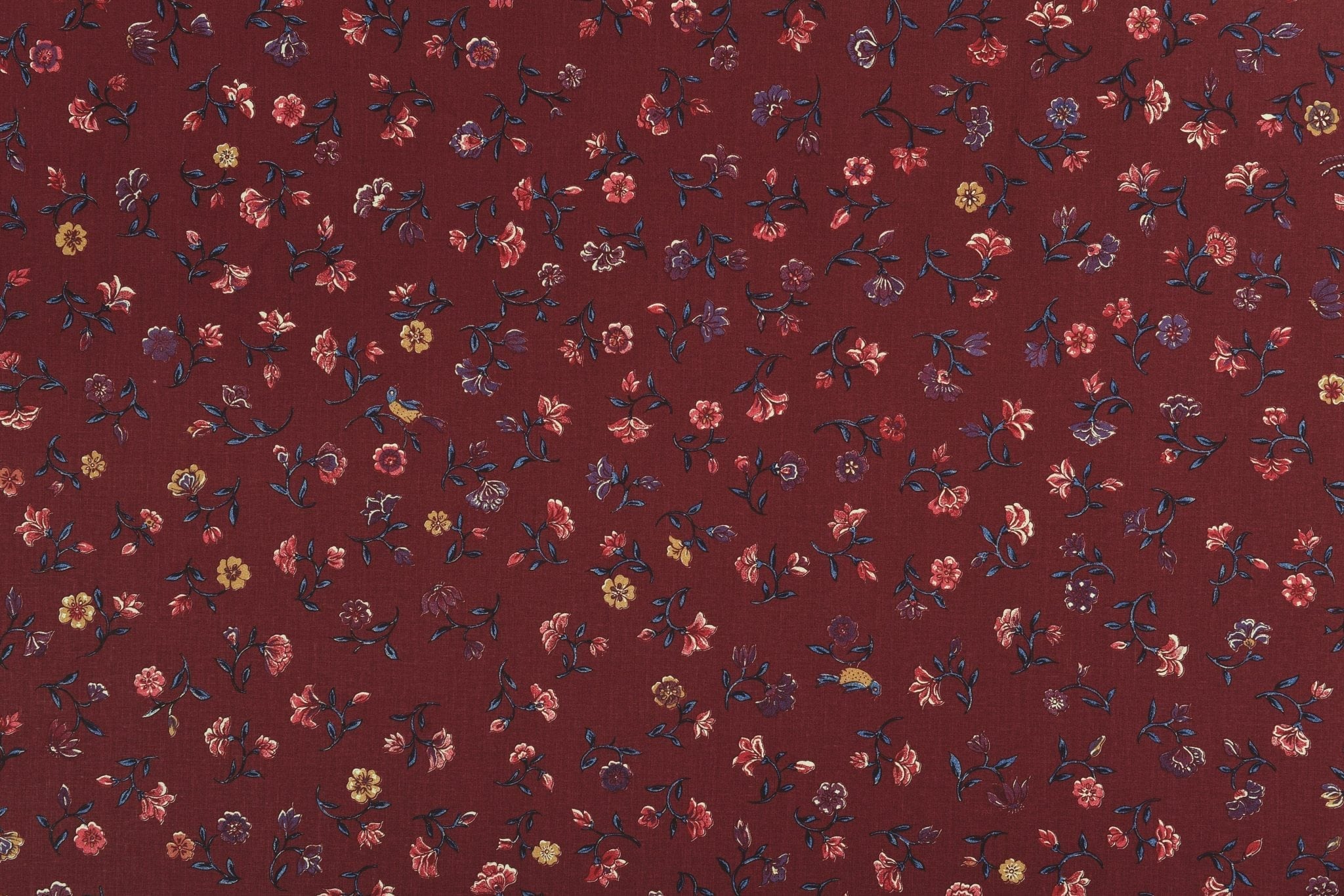 Fond Bordeaux rouge foncé, fleurs multi couleur.