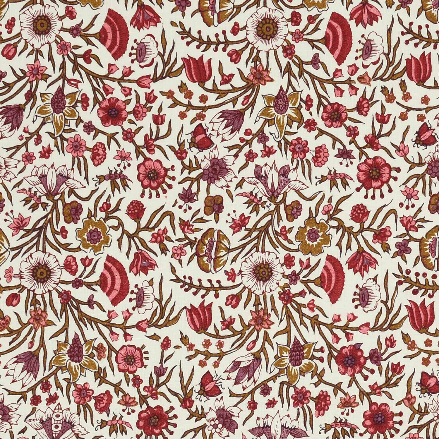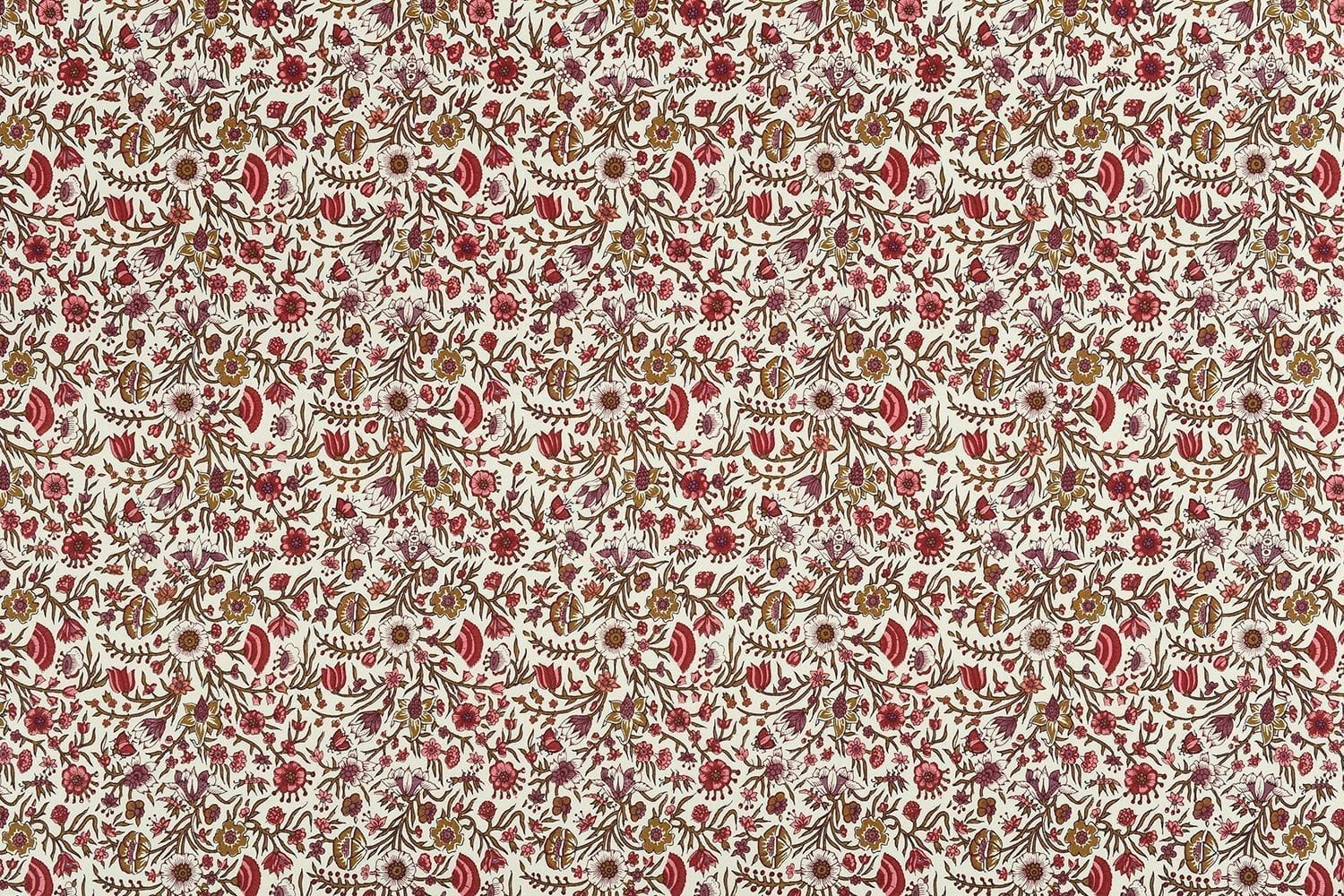 Ecru achtergrond met rood en mosgroen klein bloem decor.