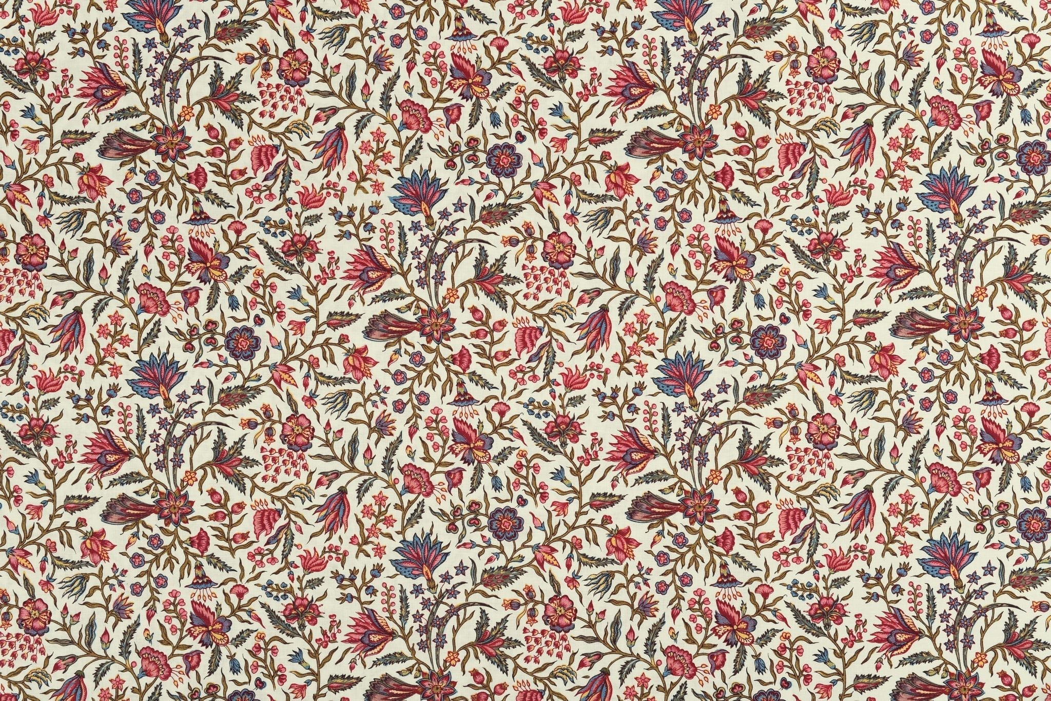 Fond ecru, fleurs multi couleur.