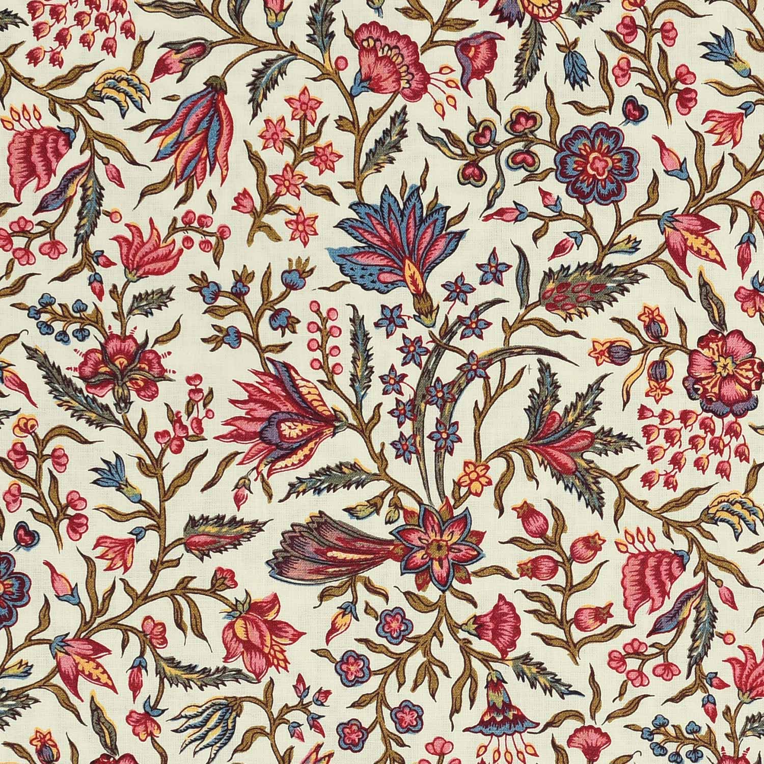 Ecru background with multi color flowers.