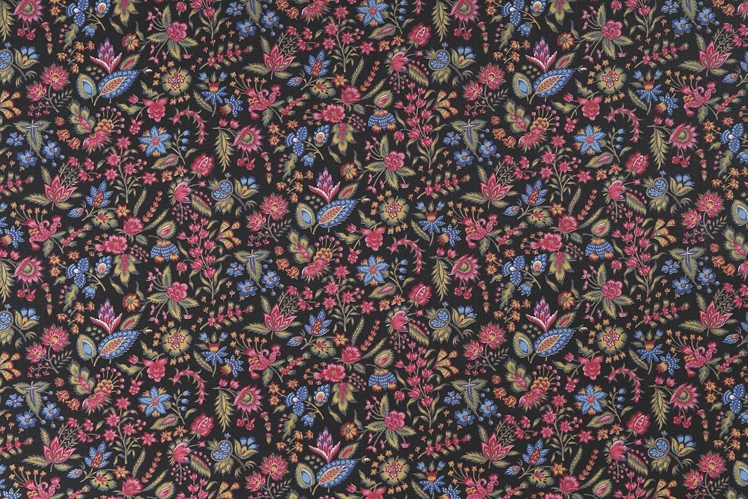 Fond brun foncé ‘ nachtgrond’ , fleurs multi couleur.