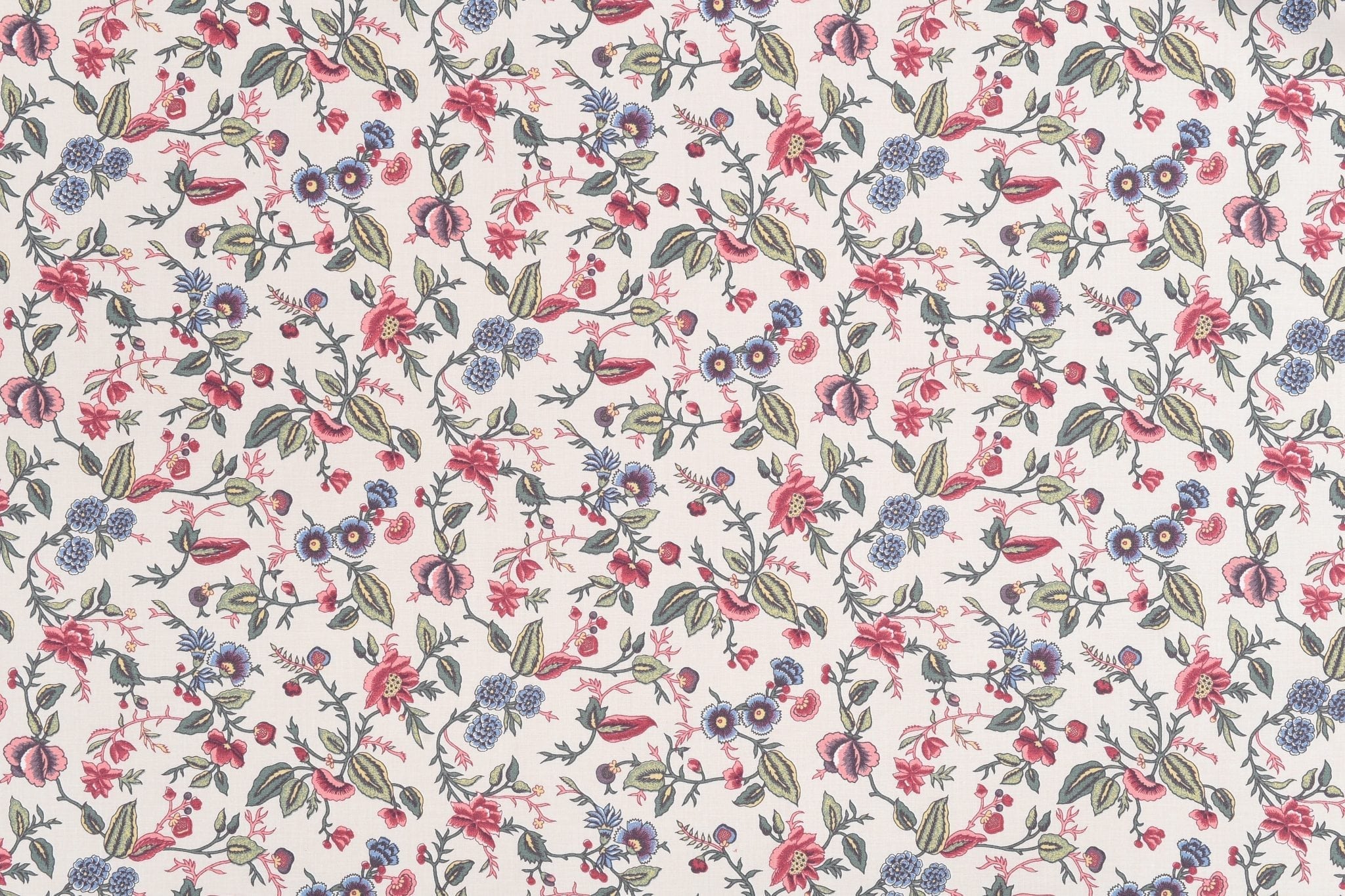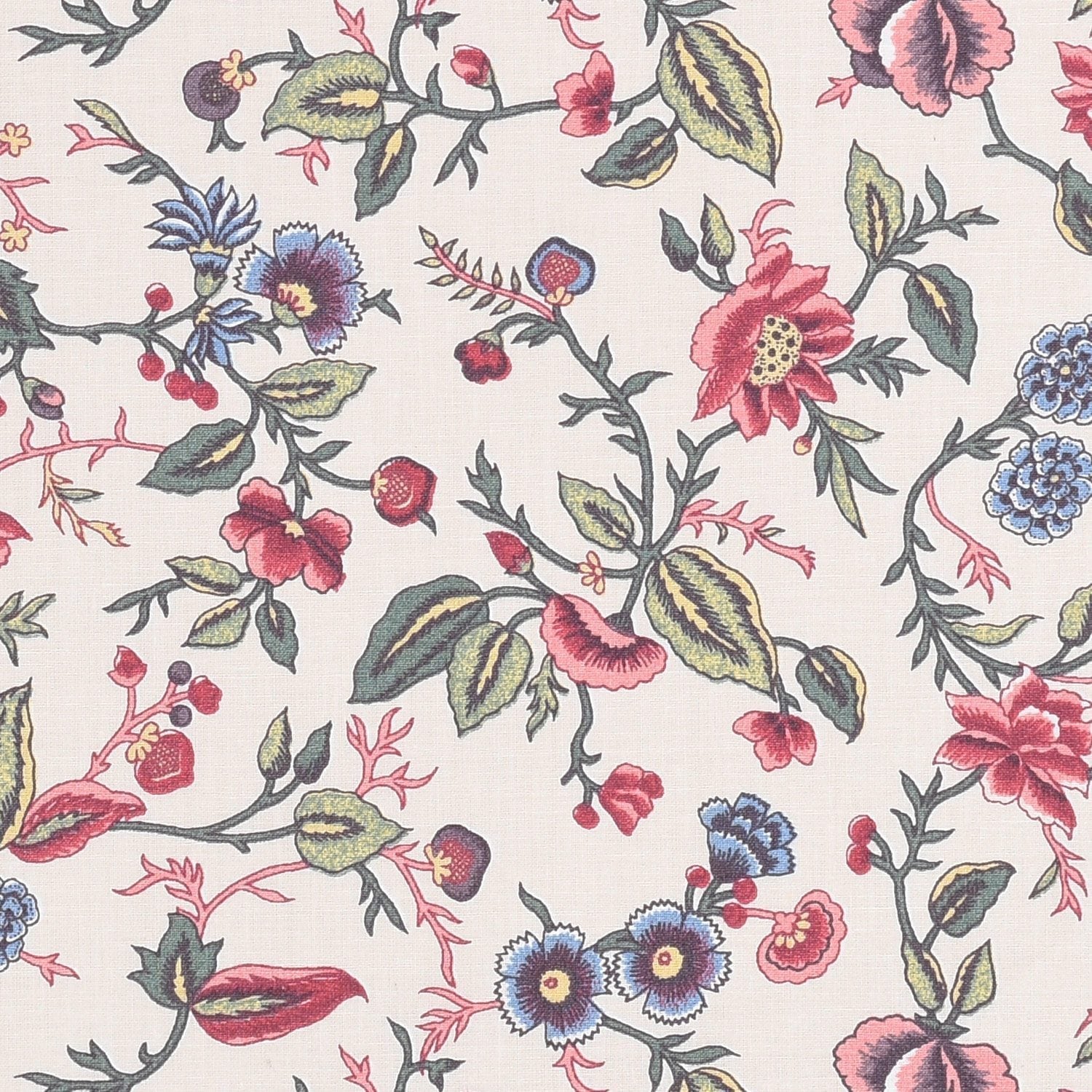 Ecru background with multi color flower fantasy.