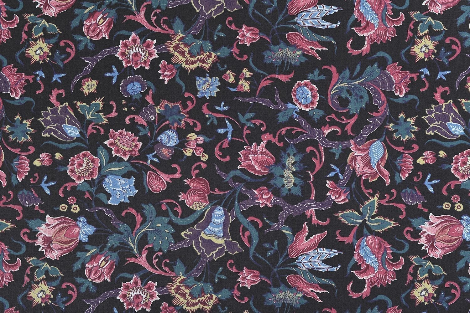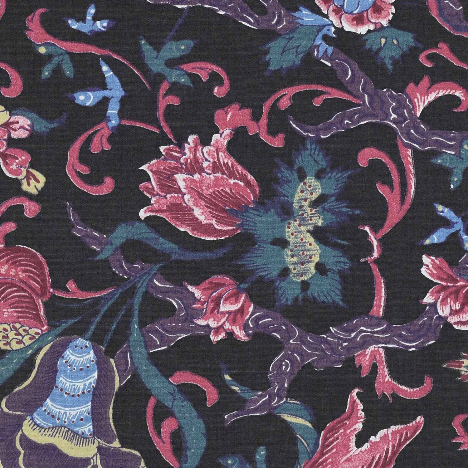 Donker bruine achtergrond ook wel “nachtgrond” genoemd met rood-rose en l.blauwe tulpmotieven.